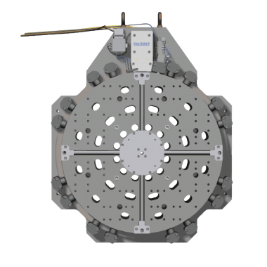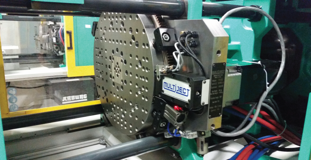Multiject builds and services Electric servo driven rotary tables for the injection molding industry. We can supply rotary tables virtually any size. Current installed base includes 400mm to 2600mm diameters. All rotary tables are electric servo driven with three-way positioning redundancy. A sample video of a production 2 meter rotary table can be found